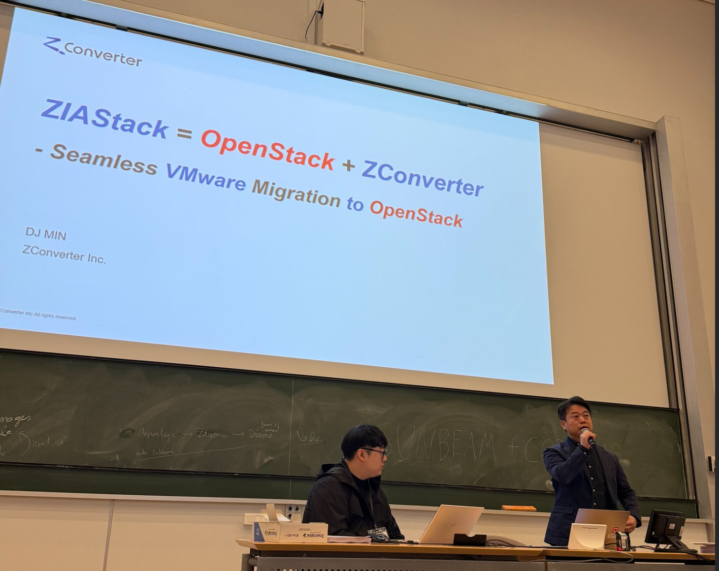 이번 키 노트 세션에서는 Live Demo: How the OpenInfra Ecosystem is Tackling VMware Migration with OpenStack 를 주제로 한국의 ZConvert사가 당당히 무대에 올랐습니다. 글로벌 서밋의 메인 무대에 한국 기업의 데모를 보며, 괜히 어깨가 으쓱해지는 순간이었습니다.
