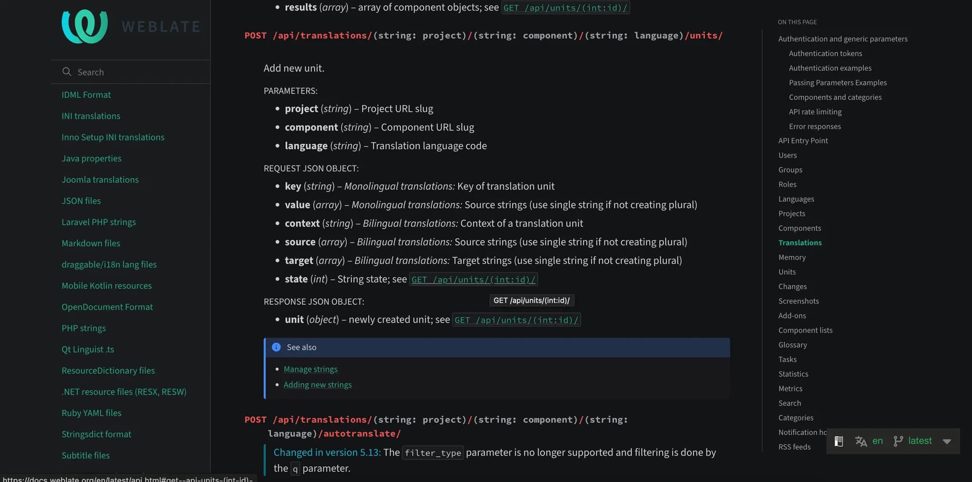 그렇다면 기존에 zanata에서는 zanata cli로 push 명령어로 해결했던 업데이트 문제를 어떻게 weblate에서 수행할까? 이 문제를 해결하기 위해 weblate API 문서를 찾아보았습니다.