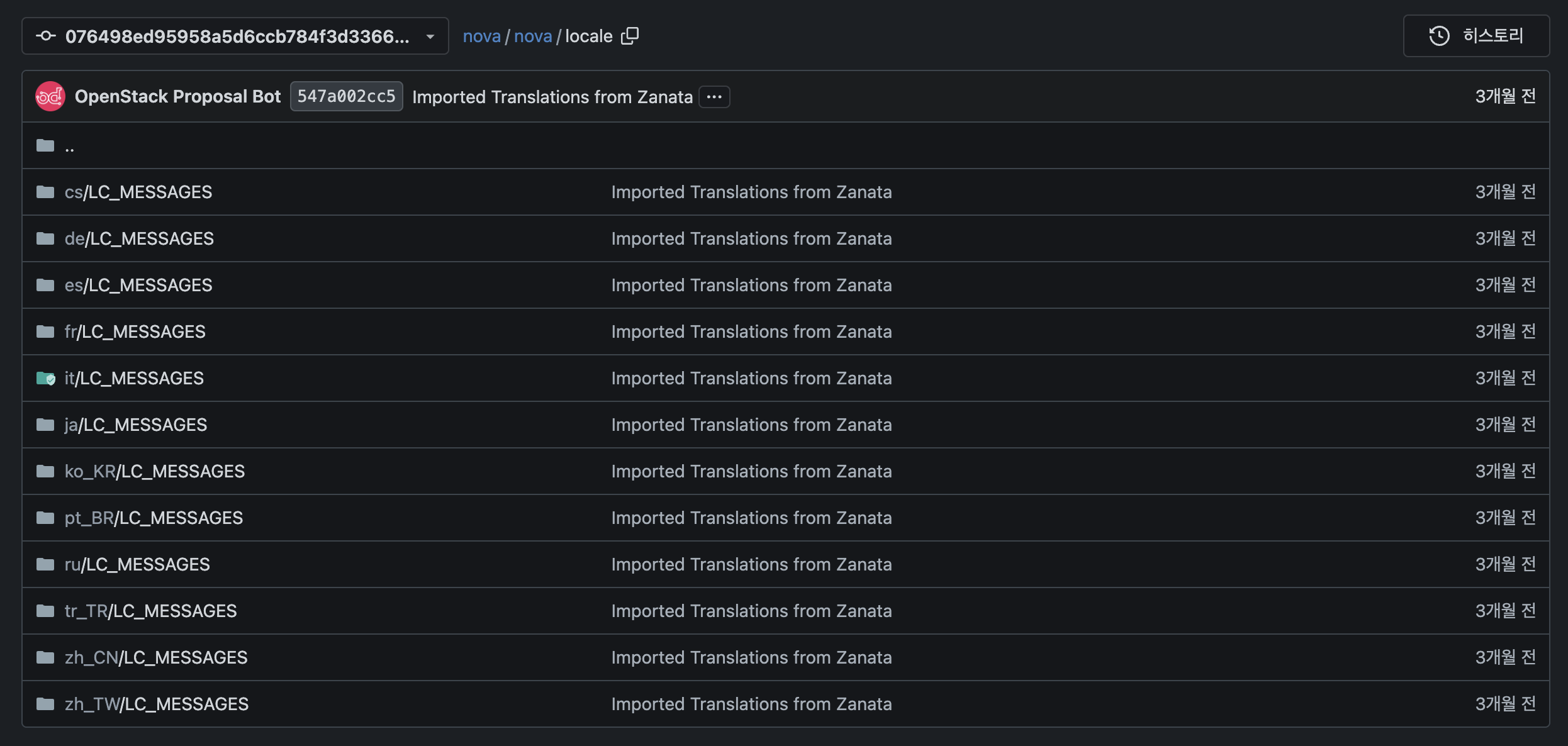 아래는 실제 nova 프로젝트의 locale 폴더 구성이다.