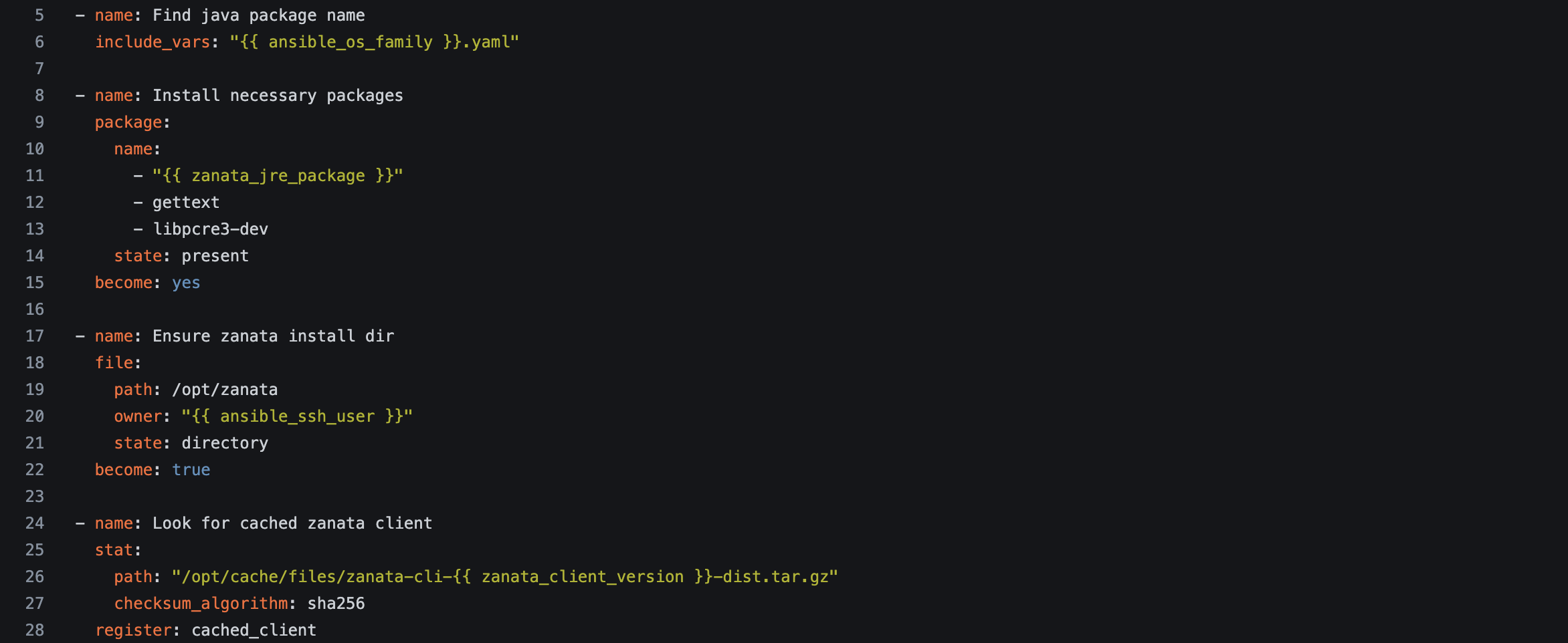prepare-zanata-client role이 실행되면, openstack-zuul-jobs/src/branch/master/roles/prepare-zanata-client/tasks/main.yaml 파일에 정의된 작업들이 순서대로 수행된다.
