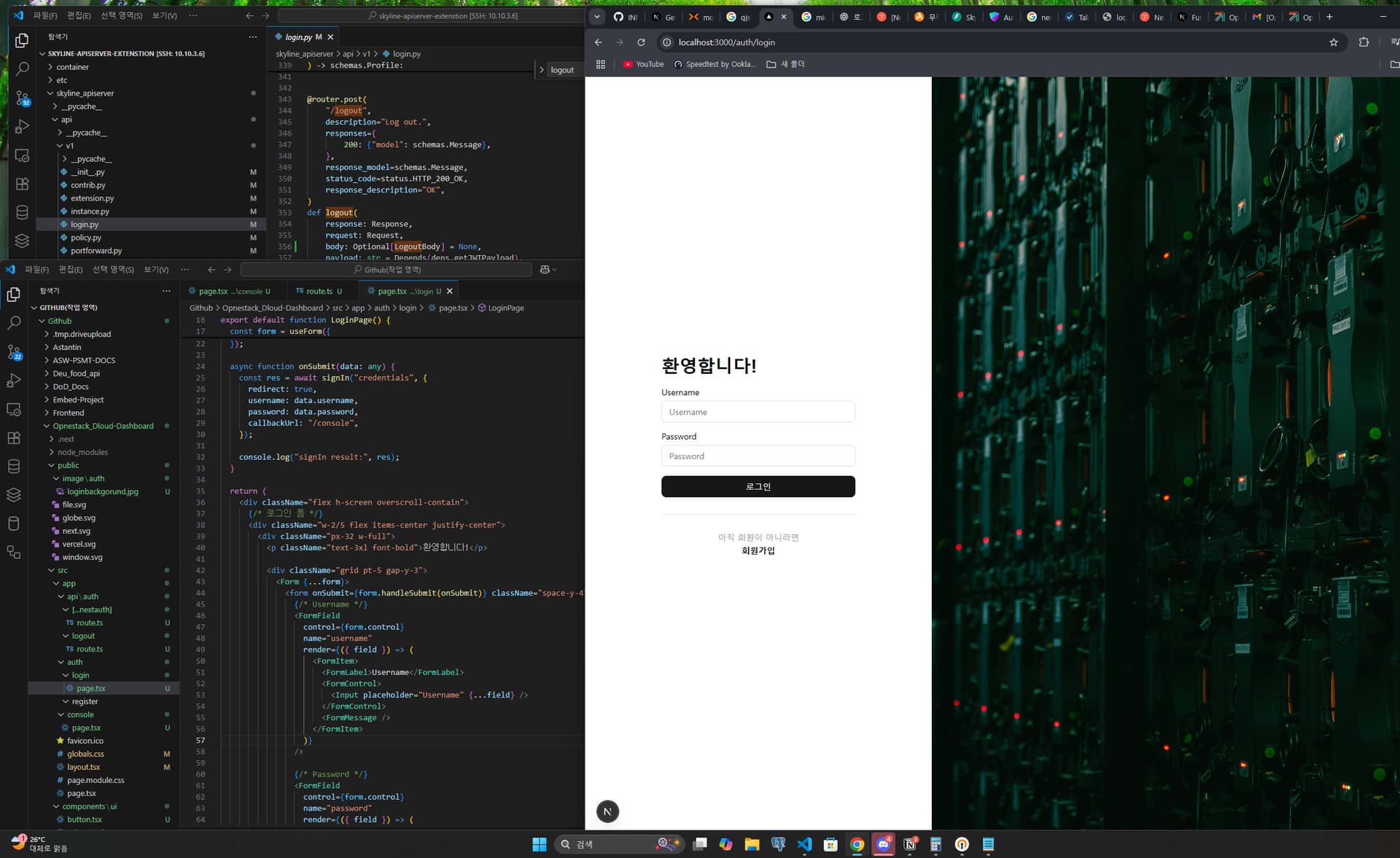 이렇게 통신이 되도록 하고 있습니다. nextjs에서는 간단한 요청과 Auth를 한번더 처리하고 조금 복잡한거는 skyline_api쪽에서 할거 같네요..