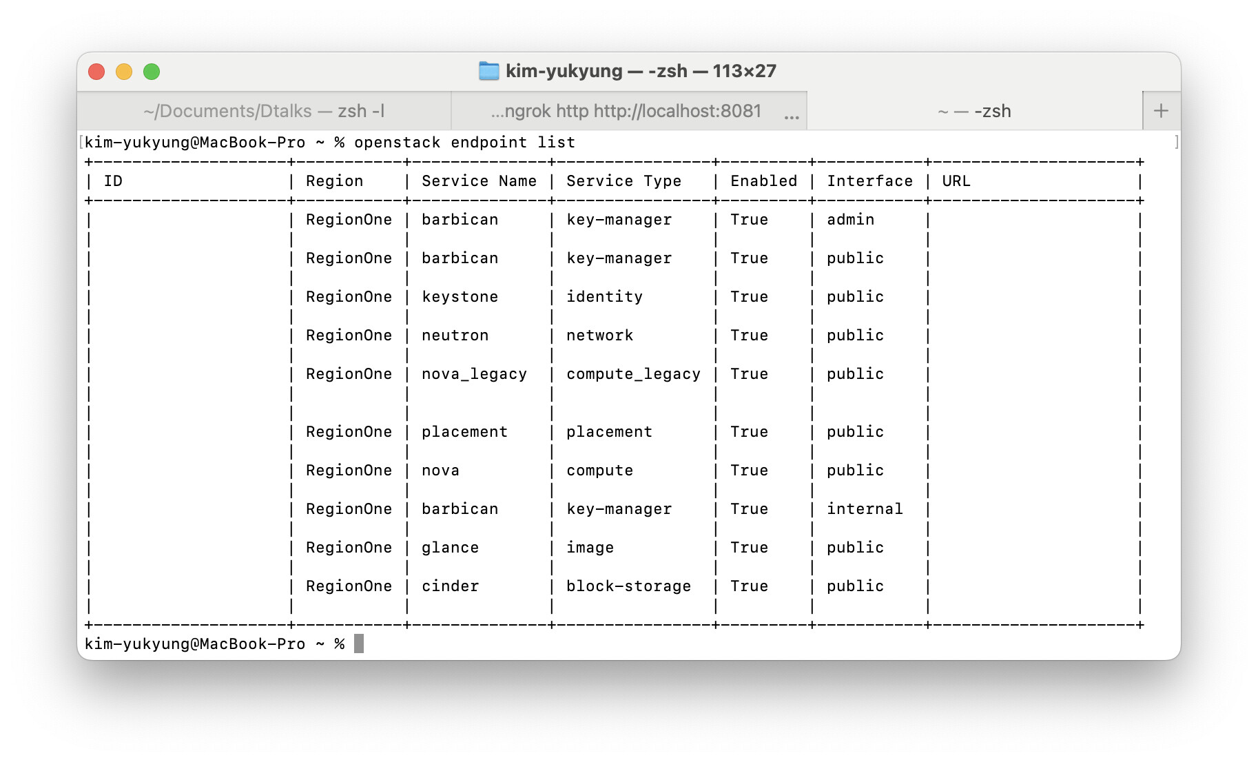 목록: openstack endpoint list [–service … --interface … --region …] → endpoints(**filters) → GET /endpoints?..