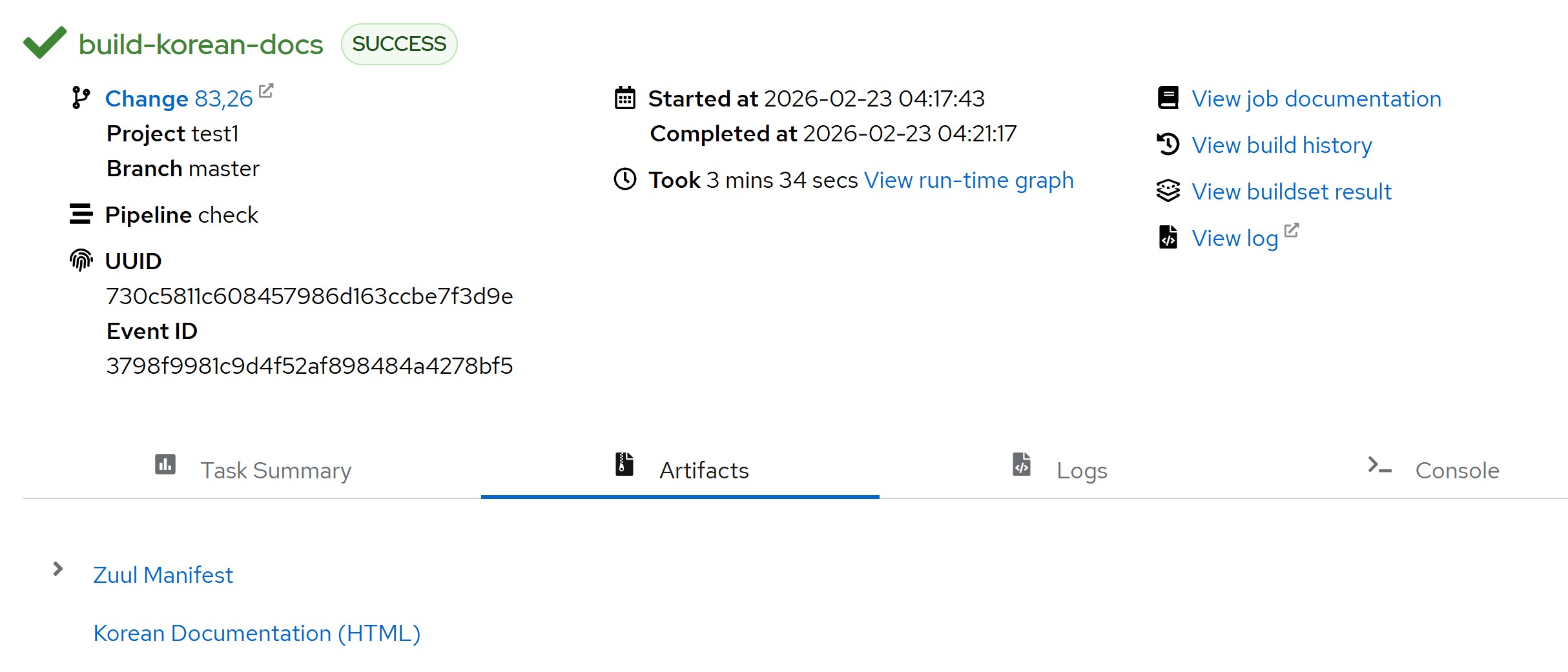 해당 모듈을 사용해서 Zuul 웹 대시보드의 artifacts에 빌드된 HTML파일을 연결합니다.
