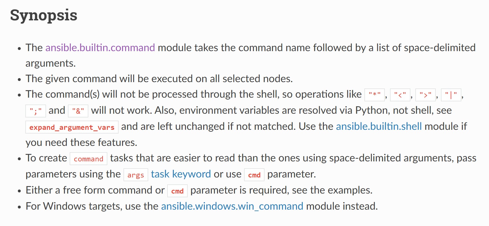 ansible.builtin.command의 Synopsis입니다.