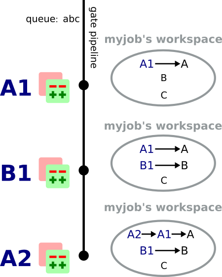 - 대기열(queue)에 있는 패치들이 이미 병합되었다고 가정함